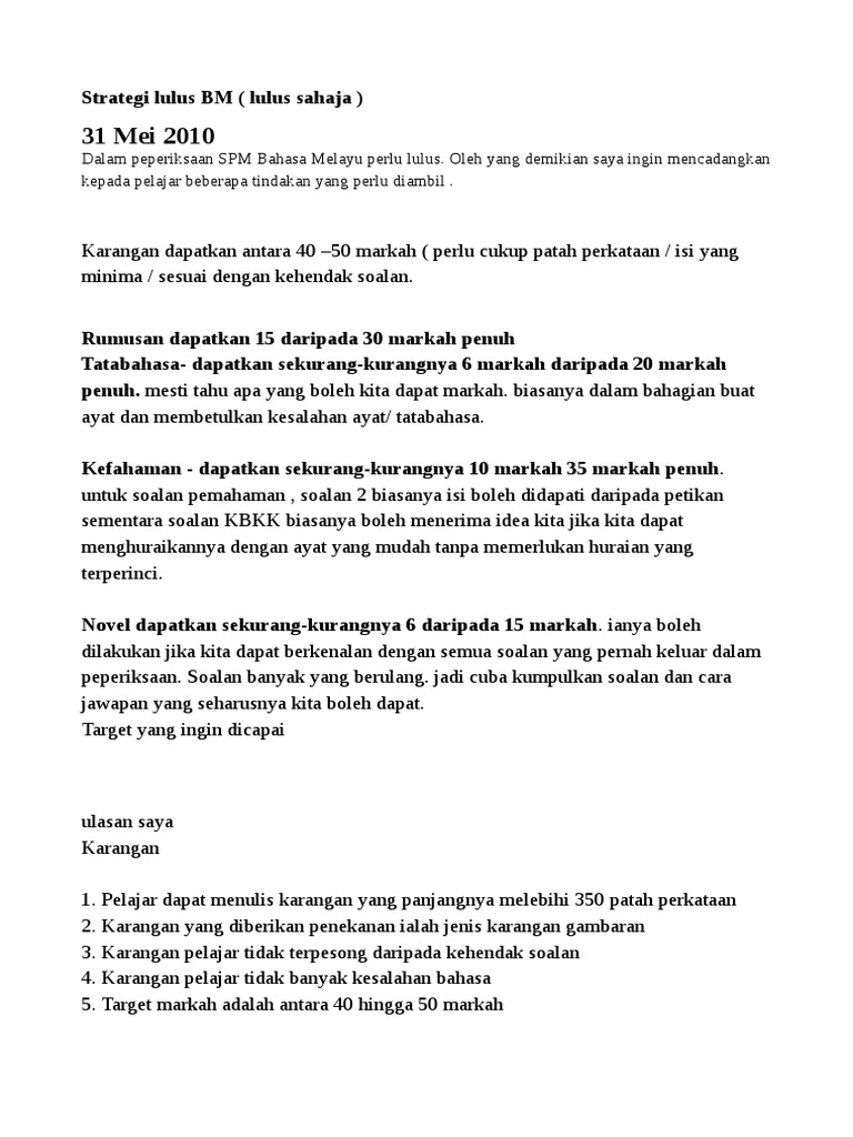Contoh karangan cemerlang bahasa melayu spm 1. Laluan SPM - IPG - SK. Dah lah tu tak tahu pulak nak prepare apa sebelum mula exam.